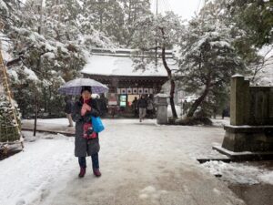 空港に行くまで2時間あった。美術館近くにある富山市民がお詣りに行く日枝神社を訪ね、雪舞降る中、2度目のお詣りを果たした。